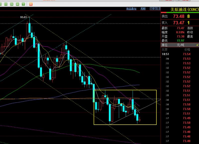 第三,原油方面:昨日18对岸小时线收线出现底部大阳,本计划回踩看反弹,见走势比较墨迹,连阴单阳也就放弃了,最终晚间是反弹了一波至74.7;