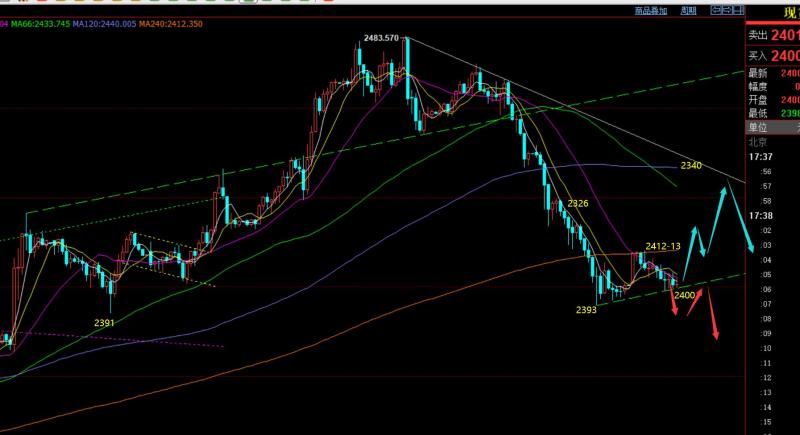 郑氏点银:黄金围绕2400上下徘徊等待结果,路线①or②?