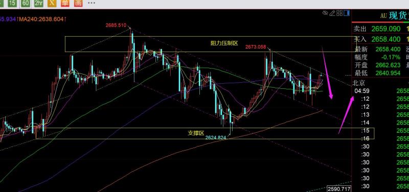 第二,黄金4小时级别:后续几日要重点留意66日均线,一旦有效失守此处,短期会延续下调一波;当前支撑上移2633一线;