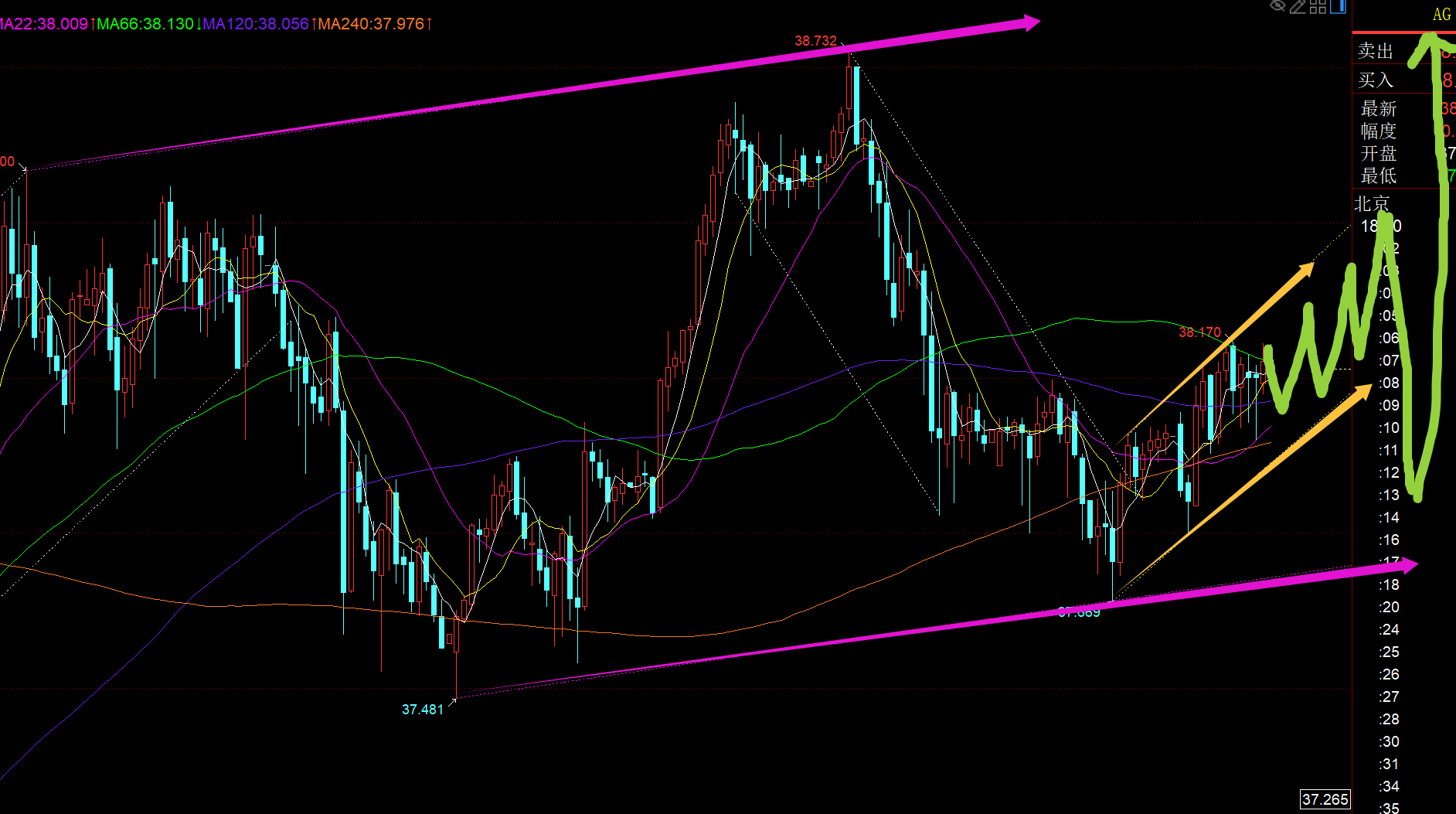 第二,白银方面:给出37.7-37.8支撑,阻力38.1,基本处于此范围内窄幅运行;
