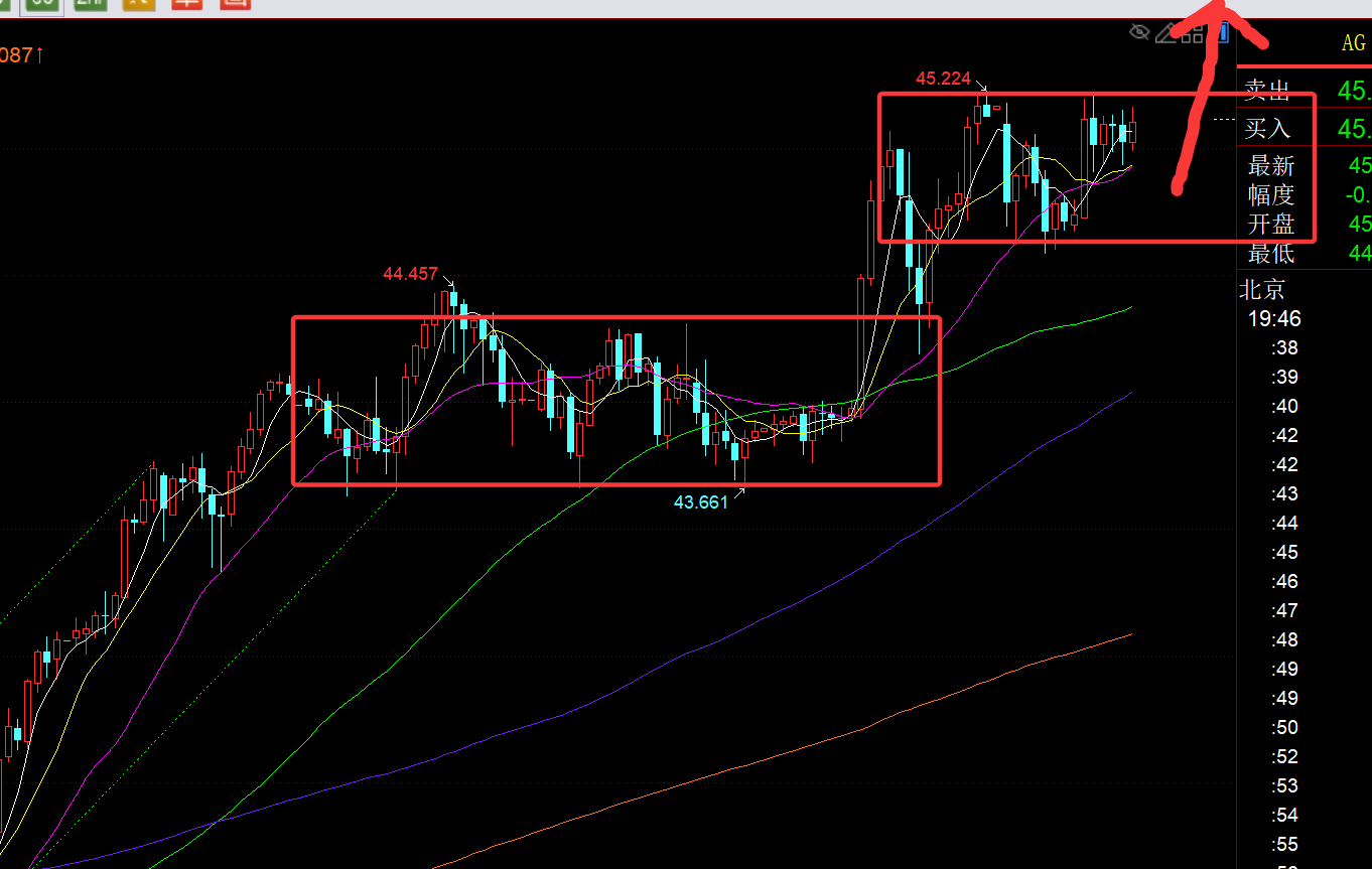 第二,白银方面:白银的走势依旧强于黄金,今年它还真的有望出现间隔15年以来的单边强势补涨,有望冲击50关口; 昨日本计划43.6、43.3去看涨,早间未给到机会,欧盘直接强势猛涨刷近期新高,美盘则二次跟随看涨,依托顶底支撑44.3一线,最终成功抵达45目标,最高45.2,比较给力,基本上这一波就挽回了黄金欧盘追涨的损失;