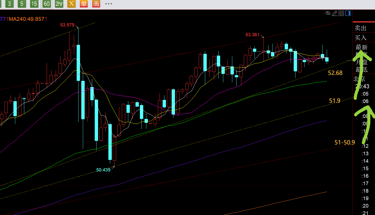 第二,白银方面:昨日承压53,支撑51,符合区间内运行;