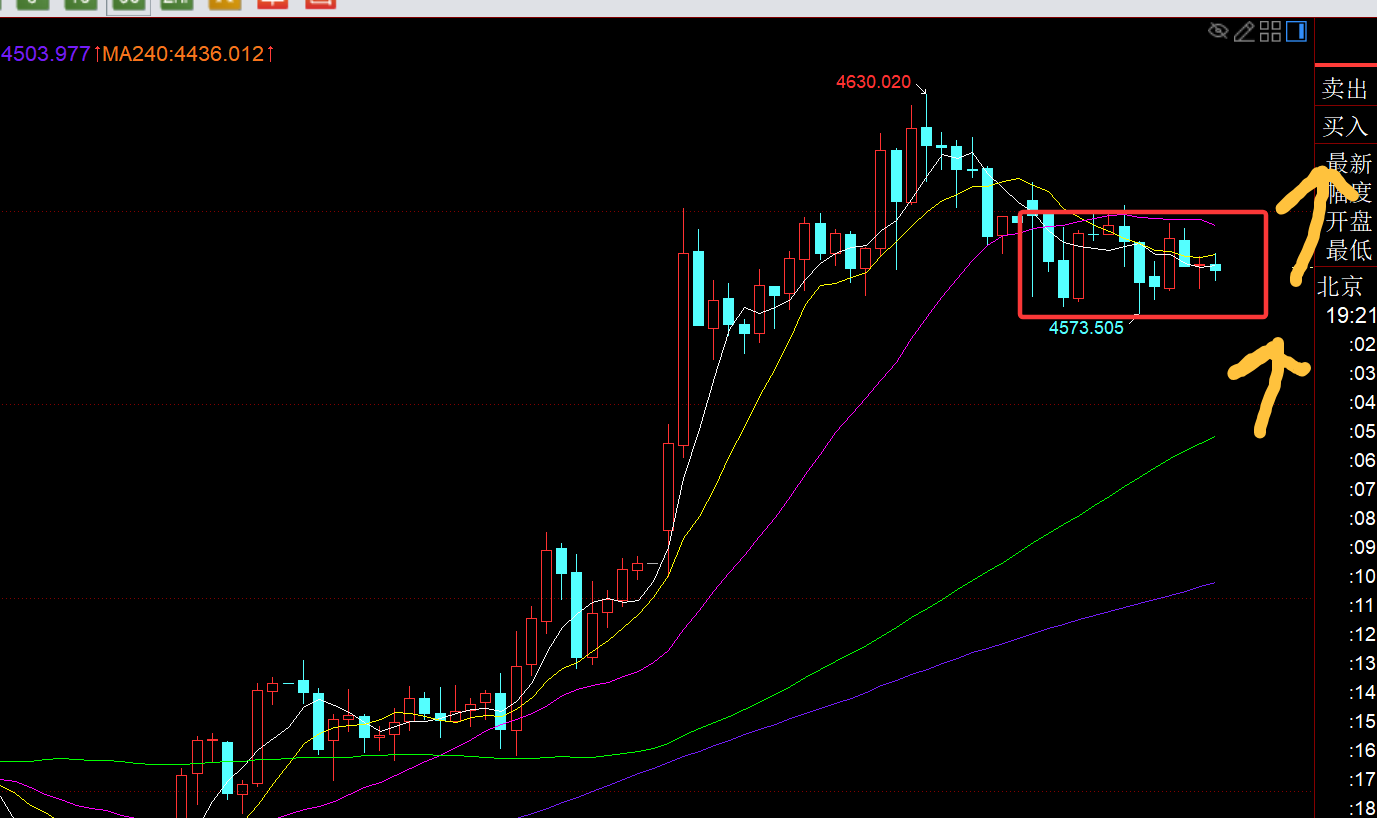 第一,黄金日线级别:昨日收报大阳,有效突破前历史高点4550一线,那么今日依托它顶底之上企稳继续北上看涨,延续趋势拉升;最近的趋势多头走法更多的是震荡式逼空上涨,中途伴随几日的强势连阳,持续性是暂时比不过去年九月十月的单边多头,因此在一路强攻破新高的过程中,可能还会出现类似去年末突袭的打压获利盘阴K,但也不用过于惶恐和担忧,若真出现大阴,反而是低位再次把握波段北上的时机;一波健康的拉升,中途偶尔出现回测是正常不过的,从短期通道来看,上轨压力有所延续至4665一线;