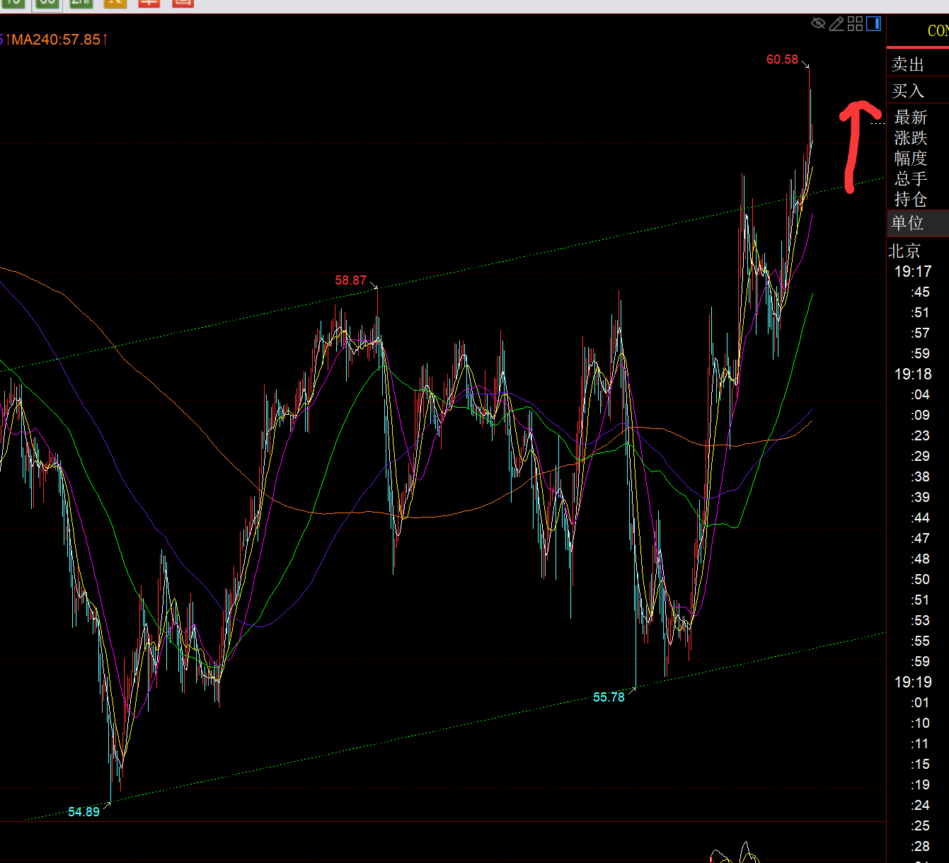 原油方面:从上图看,隔夜拉升有效突破短期通道上轨,日线66日阻力58.8有所站上,那么今日回踩确认它则延续看北上反弹,短期内有可能会逐步往日线年均线63去试探;