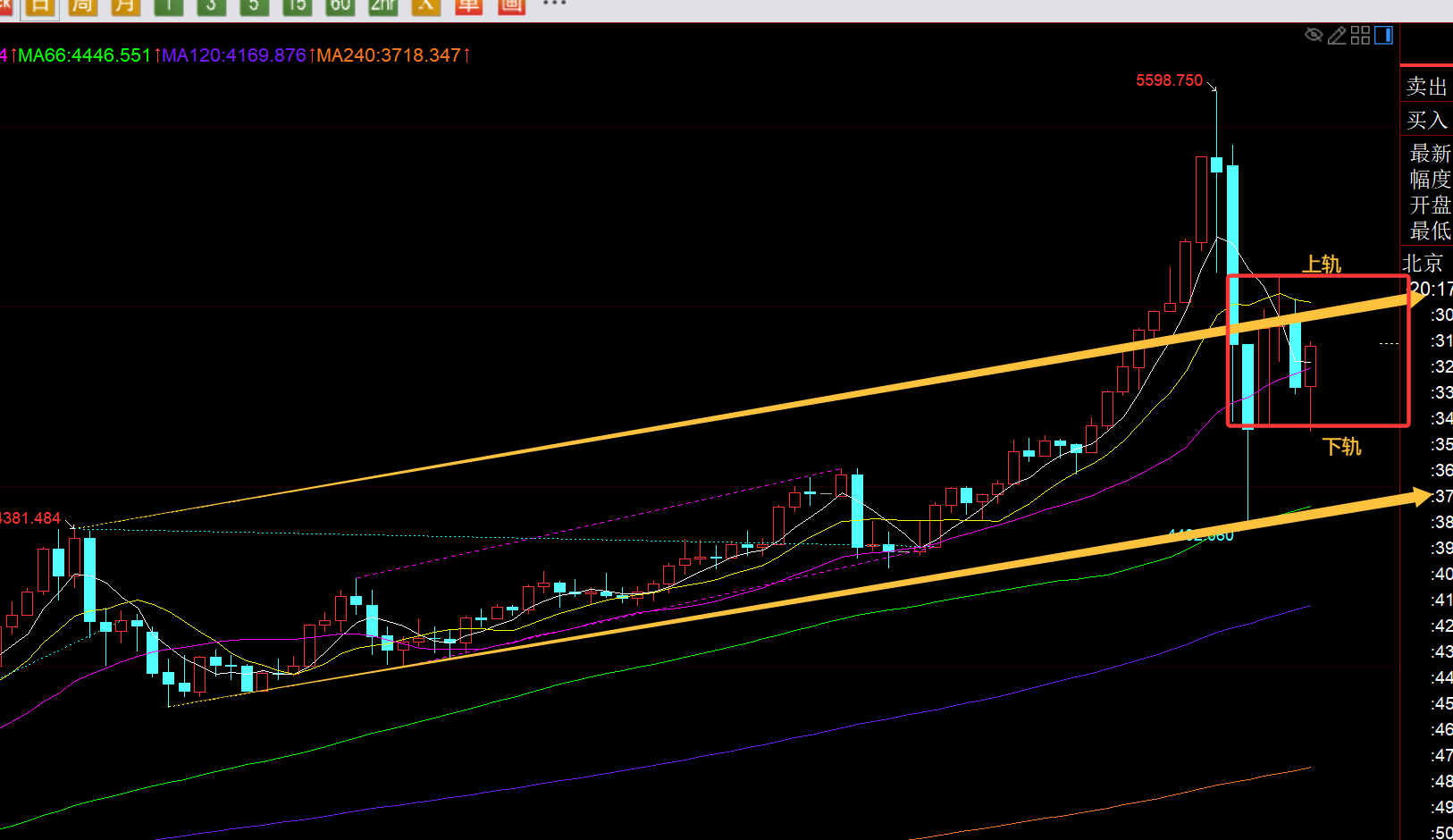 对于今晚来讲,早间依托4965直接先续涨一波,这点符合周视频预判,也抵达逼近5050目标阻力,而午后及欧盘,包括现在还处于相对高位反复整理,高点多次压制5040-5050,而低点稍有所上移,4965-4982,那么对应现在趋势支撑点大概4990附近,同时小时线中轨4995也是靠拢它,所以今晚4990上先企稳继续看北,阻力5025,突破站上继续看5040及上得失,能破新高的话,就有机会试探图中箱体通道的上轨5080-5090一线; 若守不住4990向下收大阴失守,则基本转为震荡,日线还要区间性反复整理,届时可择机反手看南,前者大概率,后者小概率,都做好预备心理;