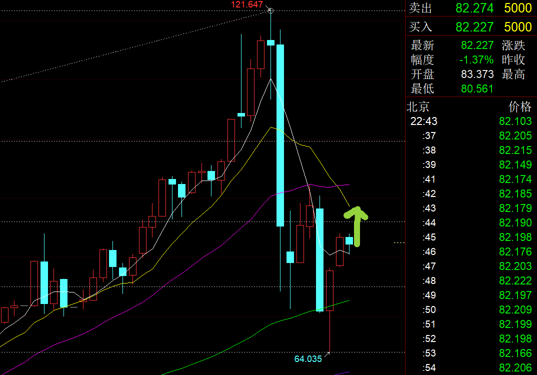 第二,白银方面:昨日白天80上看北,最终是拉升一波至84;美盘82-81继续看北,目前还处于此位置一线横盘,等待结果;