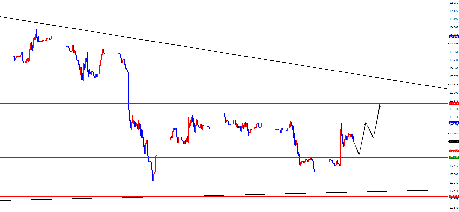 美指102.65-75区间多,防守5美金,目标103.20-103.50