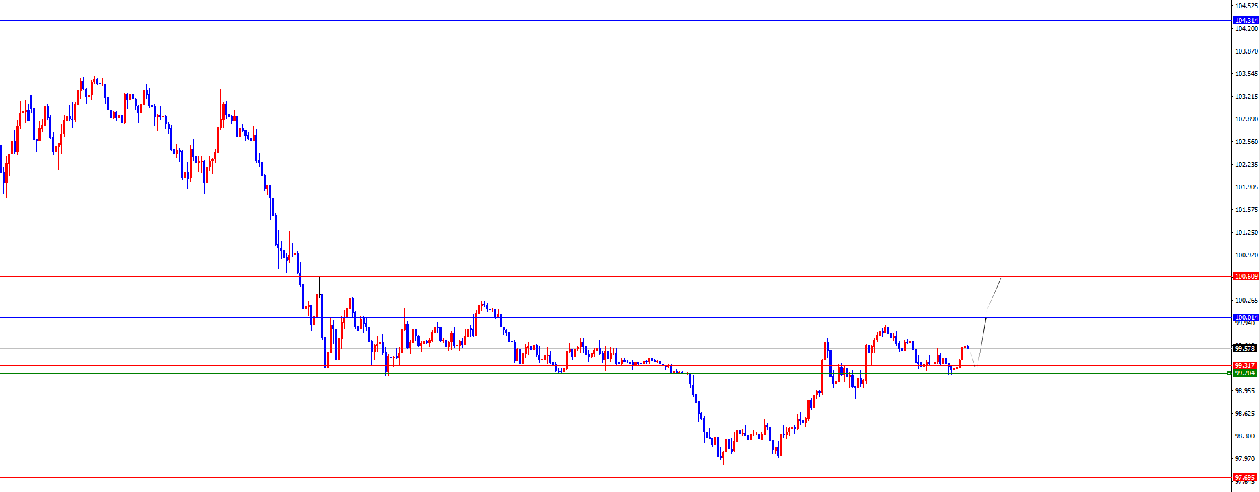 美指99.20-30区间多,防守5美金,目标100-100.60