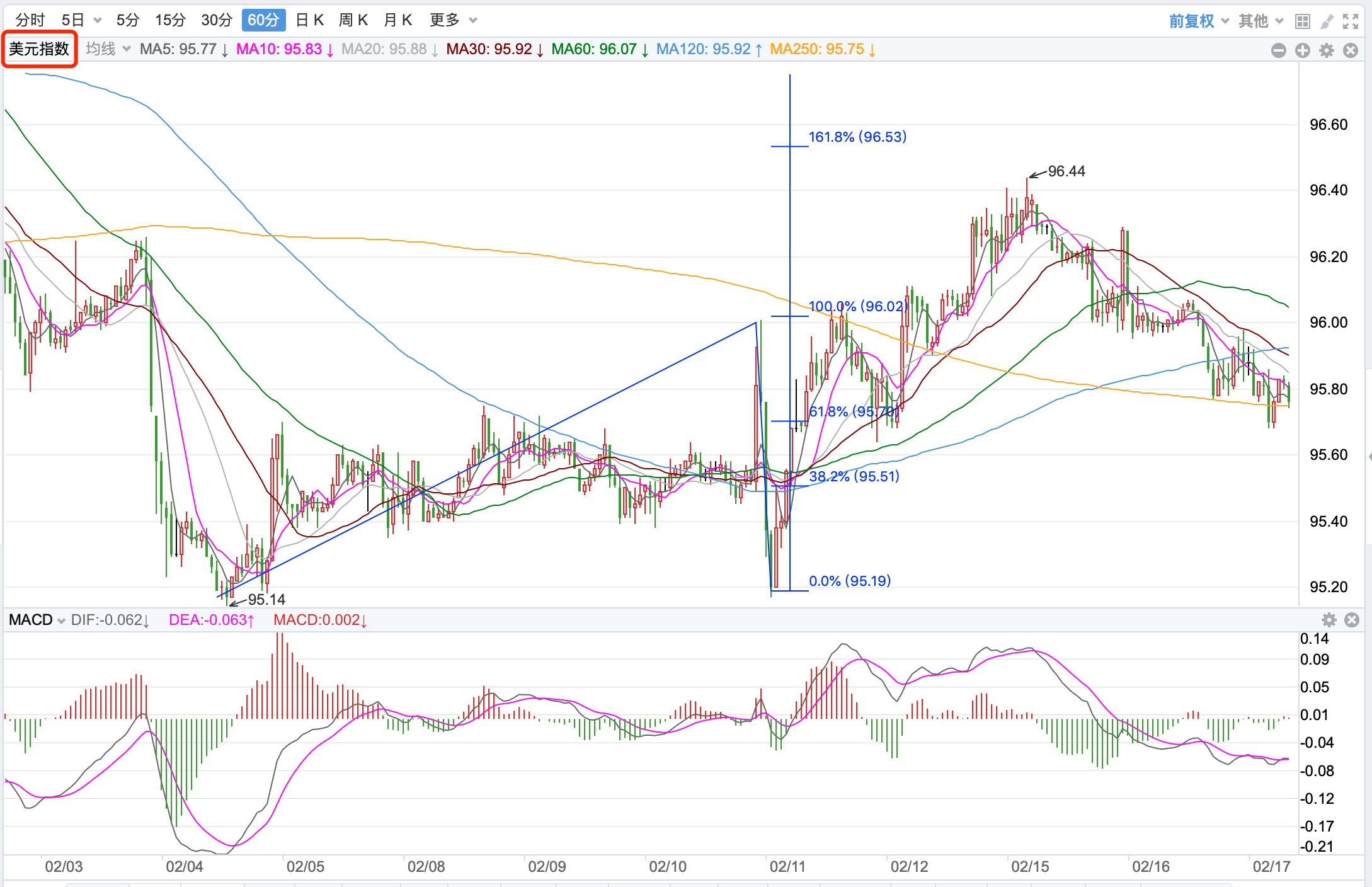 对美元指数走势构成影响的因素有以下几个方面,首先,美国公布的1月零售销售月率为3.8%,高于市场预期的2%,大幅好于前值的-1.9%的表现,为去年3月来新高。美国1月零售销售年率为12.3%,低于前值16.95%;美国1月核心零售销售月率为3.3%,高于市场预期的0.9%和前值-2.3%的表现。美国1月进口物价指数月率为2%,高于市场预期的1.2%和前值0.2%的表现;美国1月进口物价指数年率为10.8%,高于市场预期的9.9%和前值10.4%的表现。整体来看美国的经济数据均好于预期和前值,对美元构成了较强的支持对非美和贵金属不利。其次,由于恐怖数据美国零售销售数据为3.8%,大幅超过了市场预期,导致市场普遍认为美联储将降前加息程度的压力,使得三月份加息50个基点的概率大幅下降;零售销售数据走高大幅超过市场预期,有利于美联储继续专注于货币政策正常化,不必担心经济失去增长动力。第三,美联储公布了1月份联邦公开市场委员会(FOMC)货币政策会议的纪要文件。会议纪要显示,与会者认为美国通胀过高,支持尽快进行一次加息,并可能加快政策紧缩步伐。会议纪要称,美国通胀率过高,经济接近充分就业,有理由尽快进行一次加息。多数与会者指出,如果通胀率没有如预期下行,那么委员会以比目前预期的速度更快取消宽松政策将是合适之举。纪要显示,美联储资产负债表计划将在“即将召开的会议”中确定,未来大幅缩减资产负债表可能会是适宜的。纪要称,“许多与会者认为,形势可能支持今年晚些时候开始缩减资产负债表规模。”综合以上的因素分析看,美元指数走势没有受到美联储公布1月货币会议纪要的影响而上涨,主要的原因还是由于零售销售数据大幅超过预期的走高,降低了美联储3月份加息的力度,但基本面对美元指数的支持因素依然存在。