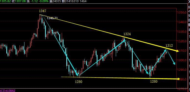 昨日黄金走势最终走的还算符合早间判断,只是过程比较艰辛,尤其是亚欧盘围绕1305-1301小范围来回整理,并且美盘在多重数据利空黄金下,和美元同时上涨,最终支撑1300迎来一波上攻触及1310.5高点,惋惜的是预期目标压力是1312,差一点未给到;今明两天对于黄金来讲应该到了出现拐点的时刻,从如图通道来看,关键趋势大通道压力已经逼近了,大概在1312,也是前期开跌口位置,这里守住不突破,黄金或存在再次的下挫,下方的支撑是1300,失守此位置走弱才能结束这一波反弹;只是目前来讲,美元偏弱下滑,黄金想要走弱出现前两次类似的大跌概率有些小,暂时对于黄金重点关注1312-1300区间得失,来判断后市的走法;另外,从小时线图也发现了指标的双背驰压制,有大概率出现急跳水修正,不计划1306之上继续看涨,以1312作为防守,先看空,到了1300守住再去看涨或者1312关键压力被突破站上了,那么黄金后市会进一步的打开新一轮的上行,届时再去逐步跟多也不迟;
