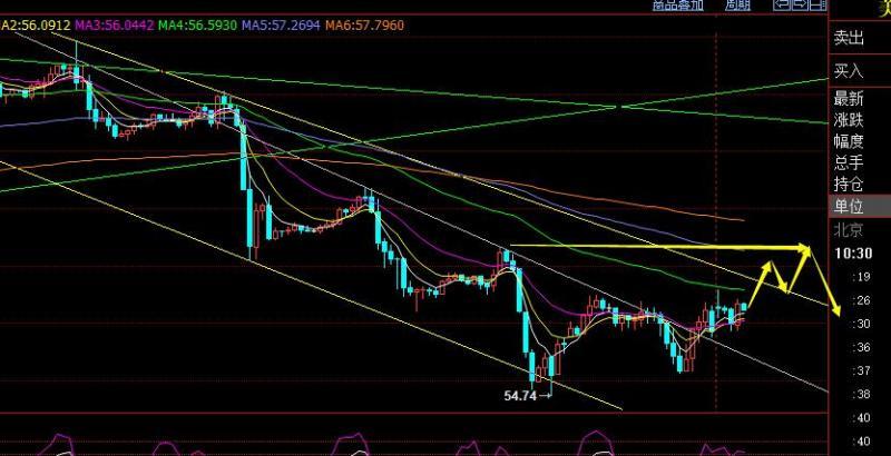 上周由于消息面的多重利空,价格一路下挫,多头节节败退,最低触及54.7,而此位置是以60.9和50.6高低点进行分割线处理回测的618位置,周五强调不会破底,尾盘反弹一波,正是这个道理,周线尽管上周大阴,但前期都是阴阳循环,收阴不代表连阴,利空消息面一旦过去,技术则会支撑开始上涨,从小时线看,价格突破了周五的趋势压力,56.6-56.5一旦突破站上,就会试探57.3上一个高点,从4小时看,价格突破站上10均线,就意味着很难继续下挫,可围绕56逢低先试探多,下方55成为一定强支撑,根据循环,本周有望收阳;