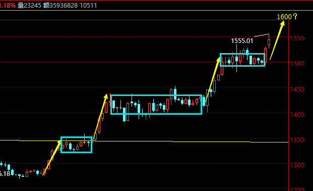 金价再次避险单边强拉,市场氛围瞬间高潮,回归历史,近期黄金从底部1275美元第一轮单边算起,已经经历了三轮避险连阳的上涨,而这次从上周五1492再次起航,按照单边持续拉升的幅度,每次基本100美金会有,那么这次哪怕强势到1600美元关口都不足为奇,当然,从月线级别1580-85附近是存在比较大的分割点,当价格不断拉升后,中途肯定会遇到获利盘的回吐下跌修正走势,往往这种走势都是急跌来的,但注意,急跌是在顺势多头趋势下,很难延续,反而是低多的最佳继续干多时机;当前,早盘依托1539起涨点拉升至1555,随后出现冲高回落,属于周末消息释放的一种结果,但走势上已经明显转强,前期日线盘整了数日,突破1535后,后市就基本以此作为有力支撑买点逢低继续一路干多上去即可,短期的支撑关注1442-1439区域,午后触及企稳可继续多,单边顺势的走势要硬着头皮干多,不要想着等大跌一波去低多,甚至去逆势做空,尽管概率会有,但单边强势启动,顺势往往容易再度爆发,只要短线控制好仓位,设好止损就操作问题就不大;