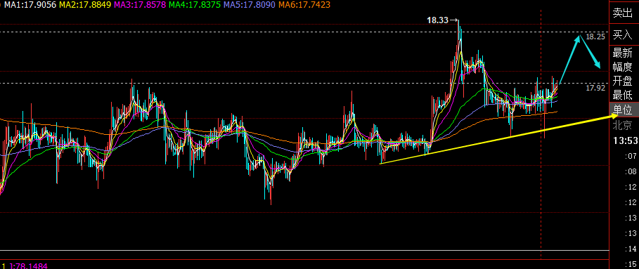 作为白银短线观望为主,因为它做单,无非就是黄金的双倍仓位去参与,不过遇到关键点位还是值得参与多单,周二抵达17.6遇到三点一线的关键趋势支撑,给出17.65做一次波段多单,成功上涨至18一线盈利,算是抓住一个小波段利润;对于今日来讲,首先前两天的横盘压制17.88阻力已经突破,回测这里确认后继续拉升,符合上行的特点,预计今天抵达18上方问题不大;其次,4小时再次突破站上布林带中轨,上轨压力18.05,日线布林带开口朝上,起码还有上涨的动能;最后,强压关注18.25一线,极限18.35-18.4,也是波段做空的点位,参考黄金1520下方逢高压制即可,认为白银近期也会围绕区间继续整理,17.6-18.4是近期的大区间‘
