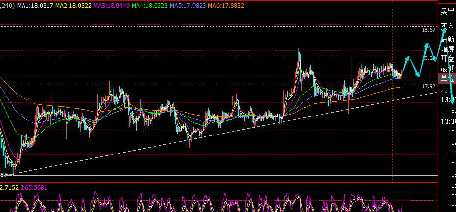 走势上符合预期思路,维持17.9上方偏多震荡运行,昨晚触及高点18.2回落,价格围绕此区间还会继续运行,日线级别维持5均线上方整理,也是酝酿后面的一波拉升,今日继续保持17.9上方震荡低多,强压18.5及上方才能波段放空;