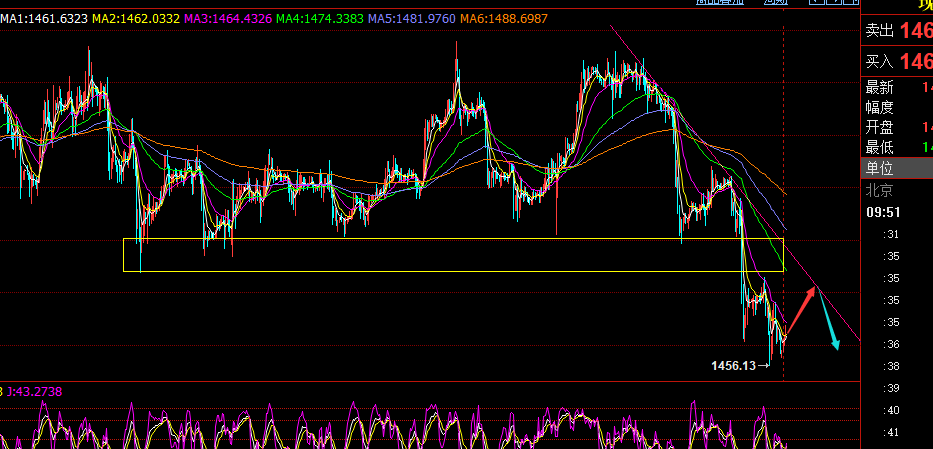 详细的短中长线思路方向昨日周评已重点剖析,可查看,今日只围绕几个小点作为阐述:第一,周线大阴砸下,短期均线终于死叉向下,本周反抽5均线1480及上方都是考虑波段做空的最佳时机,需要耐心等待;第二,日线上周终于破位了关键的中期66均线,有效失守于下方,那么后市也会反抽确认靠近它,也是波段做空的机会,阻力也集中在1480-1484区域;第三,前两点的前提都是1488不能被突破上行;第四,短周期小时线macd处于底背驰反抽中,关注中轨1464-65压力,若突破有效站上,今天会偏向反弹修正至1473-1477区域,下方支撑1458-56,再度破位则弱势延续下行测试1450一线的概率;