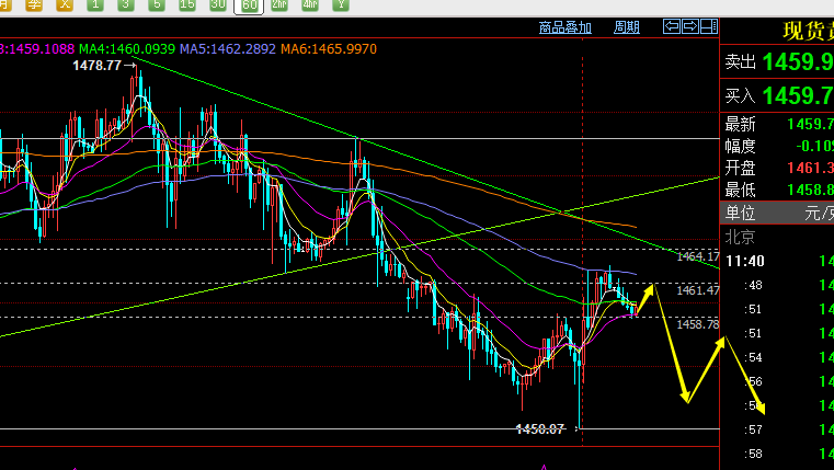 郑氏点银:黄金1464下压制空,原油57.5上低多