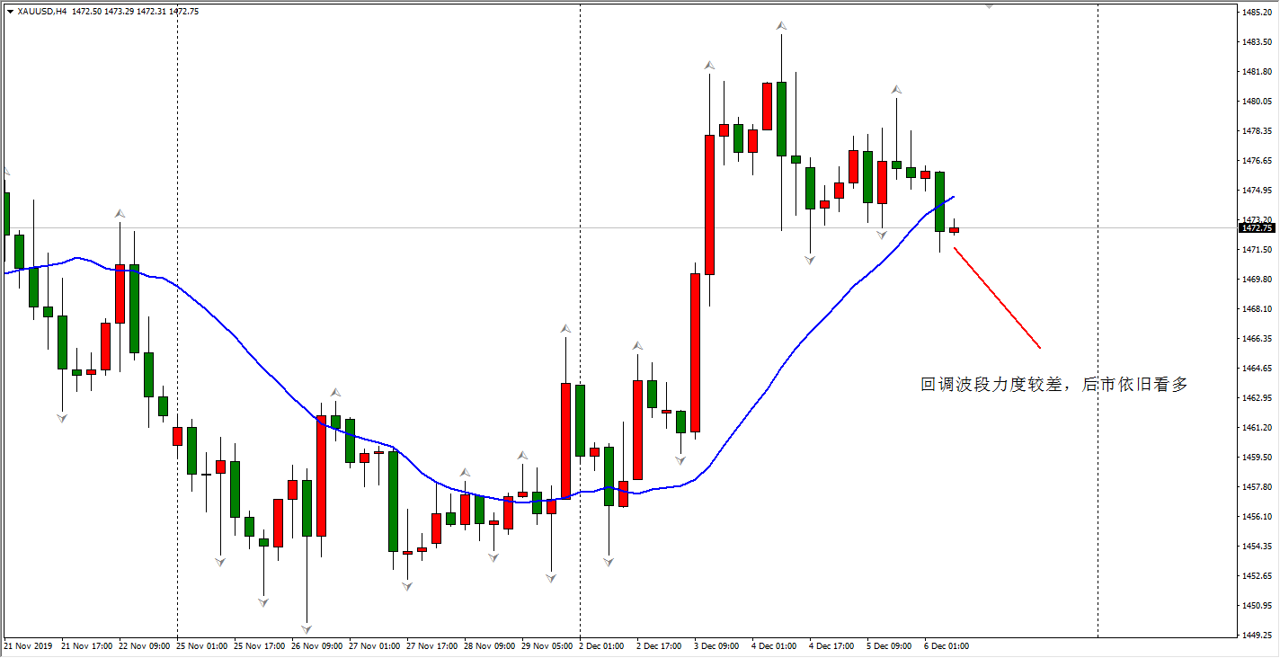 目前市场的避险情绪起伏,让人捉摸不透。美国态度依旧强硬,但中方态度出现摇摆(依据非官方消息),这导致黄金市场出现一定程度的回调。目前金价触及MA20均线,但空头波段走势力度表现一般,预计该突破为无效突破,后市维持看多。