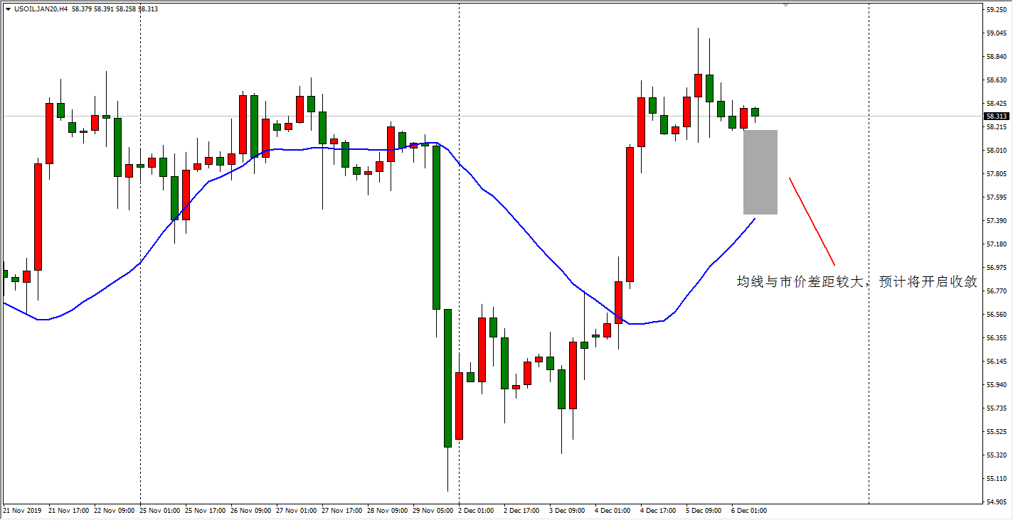 OPEC+的会议正在进行,沙特、俄罗斯等产油大国正在讨论是否延长明年3月份到期的减产协议。不过,由于伊拉克境内的示威游行和伊拉克总理的辞职,导致市场参与者认为伊拉克石油产出将出现一定程度的下降,而这利多原油价格。昨日晚间公布的EIA原油库存数据显示,11月29日当周原油库存下降485.6万桶,同样对油价的上涨起到了刺激作用。但考虑到美国EIA原油库存趋势依旧是增长,中长期不看好原油多头。技术面来看,油价处于MA20均线之上,且市价与均线之间存在较大的价差,原油存在回调需求,直至与均线交叉获得支撑。