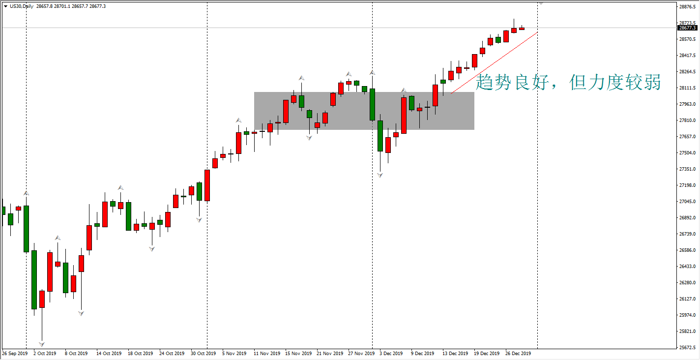 美股D1走势图(美股交易时间非24小时,所以不看H4级别走势)