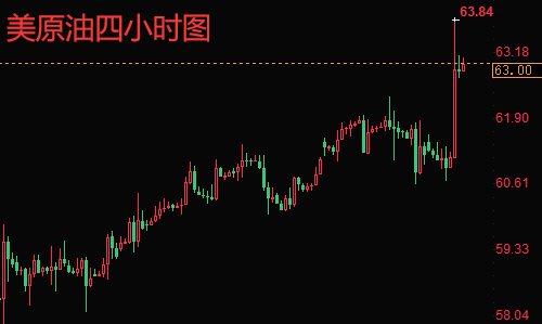 原油技术面来来分析,今日亚市盘初,因中东局势最新消息刺激避险情绪急剧升温,令伊拉克原油供应面临风险,这位油价提供有效支撑,油价飙升4%,一度刷新高63.8美元;日线上看,原油隔日延续前几个交易日跌势,再次录得小阴十字星,但今日受消息面影响,一度向上拉升,并打破9月16日前高,刷新高63.8一线,随后受阻小幅回落,运行至63关口附近,日线上我们看涨不变,或冲高回落;4小时上看,原油再经过短暂周期的回撤后,今日大幅拉升冲高,当前布林带处于开口期,MA均线呈多头排列,KDJ随机指标三线向前,MACD指标红色动能柱持续放量,快慢线多头向上,就目前来看,原油目前还有冲高可能。综合来看,今日短线操作思路上陈文龙个人建议以回调做多为主,反弹高空为辅,上方短期重点关注63.8-64.0一线阻力,下方短期重点关注62.0-62.2一线支撑。