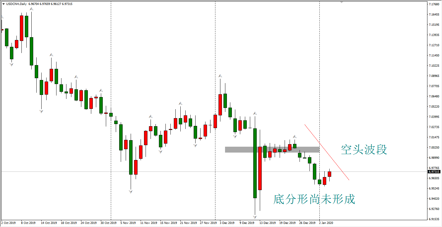 上图为离岸人民币D1走势图