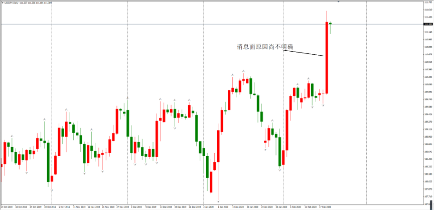日元昨日大幅贬值,汇率最高触及111.58,下一阻力位在114.54水平。目前消息面只有日本钻石公主号游轮在19日共确诊542例新冠肺炎病例,死亡两例,但该事件远未达到影响日元走向的地步。美联储昨日早间公布1月份会议纪要,其中提到“自12月议息会议以来,美国经济前景变得更强劲了,不过他们也提到了新型冠状肺炎疫情可能造成的影响。”整体表态偏向乐观,一定程度上助推美元升值,但依旧不构成日元贬值的核心原因。