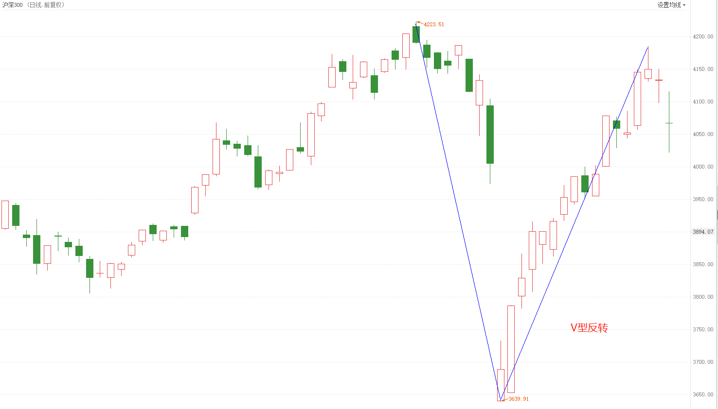 由于A股受到新冠肺炎影响最早,所以美股或许会复制1月14日至今的走势,也就是V型反转。奇怪的,沪深300指数在2月3日开盘后启动上涨走势,但在该日期新冠肺炎并未出现拐点,存在较大概率有“国家队入场”稳定市场情绪。在2月21日触及4184高点,今日下破4055位置,有形成顶分形的可能,后市或许会开启回调走势。