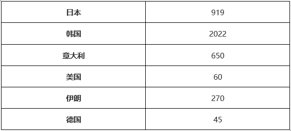 表1,主要国家确诊病例数更新