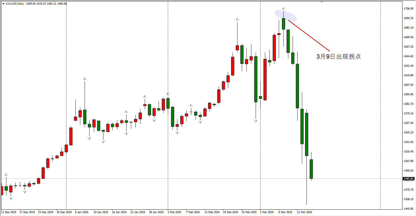 市场人士都在对3月9日黄金由涨转跌的原因进行分析,有人认为是高位获利了结导致黄金大跌、也有人认为是美元指数的升值导致了黄金的下跌。这两种解读,不能说错误,只能说是一叶障目不见泰山。对国际市场的分析,除了要观察宏观经济、政治立场之外,还需要紧盯大型金融投资机构的资金动向。黄金避险只是一个标签,并不是科学定理。在美股下跌的时候,黄金可以因为避险属性而上涨,也可以因为避险属性而下跌。临界点在于,大型投资机构是否决定调整资产配置,也就是持仓资产轮动,集中资金抄底廉价金融资产。股票市场是散户最多的市场,也是机构狩猎的场所。每一次的恐慌性下跌,都可以分为前半场和后半场。前半场机构和散户一样,看不清方向,都买入黄金进行避险;下半场,散户依旧处于恐慌之中,但机构已经回过神来,卖出黄金,买入散户抛售的廉价资产。这一幕在2008年3月份上演,同样,也在今年3月9日上演。从图中可以看出,黄金走势以3月9日为临界,之前强势上涨,之后强势杀跌。当黄金“失去避险属性”的时候,也就是投资机构布局股市的时机,当然,此时股票市场依旧处于恐慌性下跌之中,只不过是下跌的后半场。