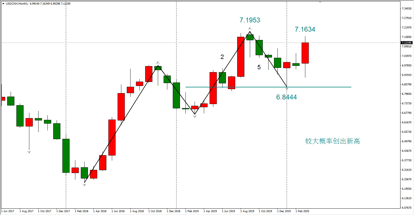 图2,离岸人民币(USDCNH)月线图