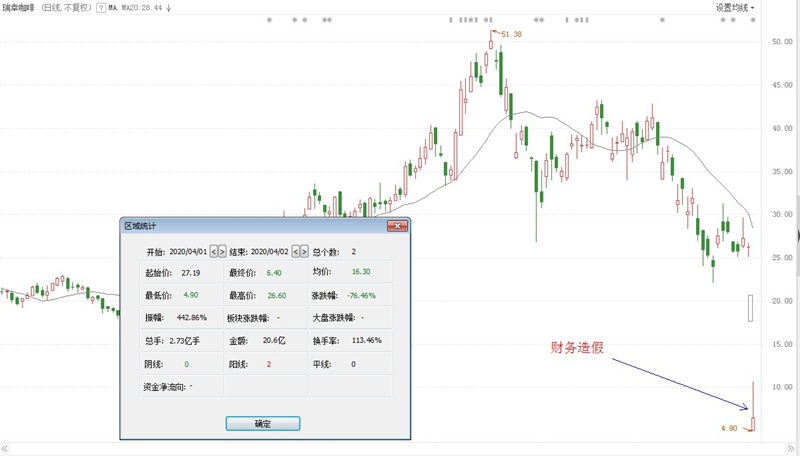 知名中概股瑞幸咖啡传出财务造假丑闻,其COO刘剑伙同下属使用非正常手段虚增22亿交易额,并对营销费用进行人为调整。消息公布后,瑞幸咖啡大跌80%以上,最低触及4.9美元/股。