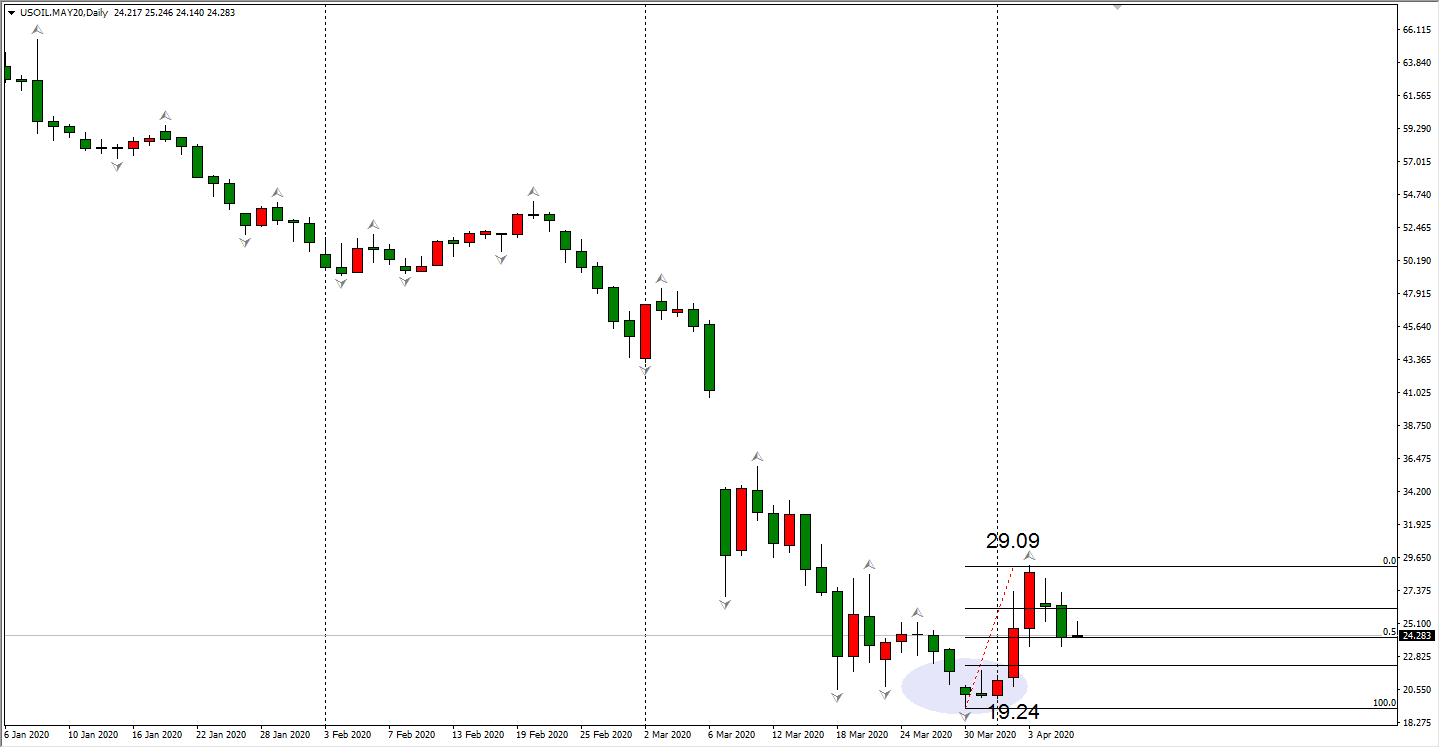 美原油期货报价24.65美元,相比历史最低19.24美元已经出现不小反弹,但由于前期高点在65.45,所以当前的反弹波段还显得过于弱小。技术层面考虑,未来可以形成A类回撤结构,然后开启大波段上涨;也可以在当前波段触及阻力位之后再次下跌,一举创出年内新低。决定这两种情况哪个概率更高的,是明天举行的,有沙特、俄罗斯和美国参与的产油国会议。目前市场关注的焦点在于美国会不会同意减产,毕竟只有沙特和俄罗斯减产的话,美国会变成唯一不受约束的受益方。预测美国是否减产难度太大,尤其是在新冠肺炎疫情肆虐的情况下,所以这里仅说明该事件的重要性,不做结果判断。特朗普昨日表态称“如果你是一个自由市场的坚信者,那么减产这种事英市场自发形成的(而非是通过开会协商)”。言下之意,特朗普并不想通过“一直讨论”而减产,寄希望于高成本产油国的自动退出。