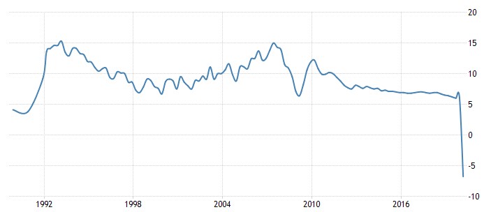 与中美不同,英国的M2增速相当低,即便是在疫情最为严重的三月份,其M2增速也仅有2.89%,远低于中美的10%以上水平。从货币供应的角度来看,英镑具有兑美元和人民币长期升值的潜力,只是自2016年之后因为脱欧问题不断拉锯,导致其币值一直处在被低估的状态。