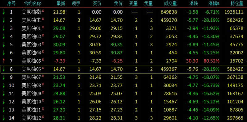 5月份原油期货合约大跌,造成市场恐慌情绪蔓延,6月份合约也在今日欧盘时段出现暴跌,最大振幅47%,最高点22.58美元,最低点11.79美元,价格几乎腰斩。美国原油市场哀鸿遍野,但英国布伦特原油却相对平静。虽然布伦特原油报价也已经跌破20美元的关口,但最起码5月合约没有像美原油那样跌至负值。