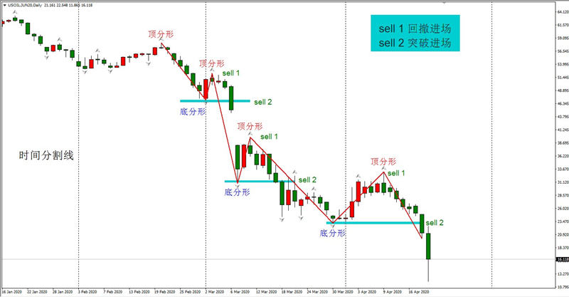技术分析的核心的是看清市场的循环结构。上图是以分形指标为基础画出的原油期货日线级别的走势结构图,很明显,当前处于4月3日以来的下跌波段当中。由于高点不断下移和市价屡创新低,技术角度分析原油处于空头趋势当中。对于短线交易者来说,当前极度不适合抄底,顺势追空较为合适。