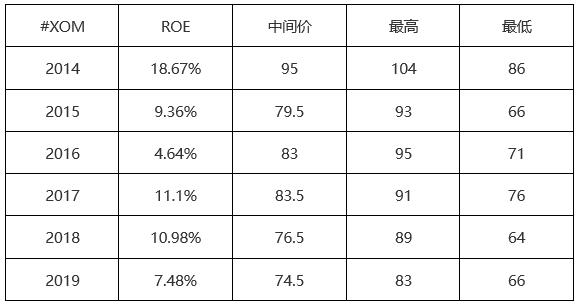 表1,埃克森美孚(#XOM)净资产收益利率(ROE)与油价关系