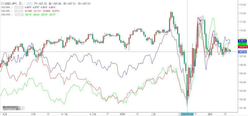 需要注意的是,低息货币并没有在新冠肺炎疫情期间出现单边上涨走势,而是以3月9日为界限,先涨后跌,走出V型反转。所以,交易者不能盲目相信JPY的避险属性,而忽略美元指数的表现情况。