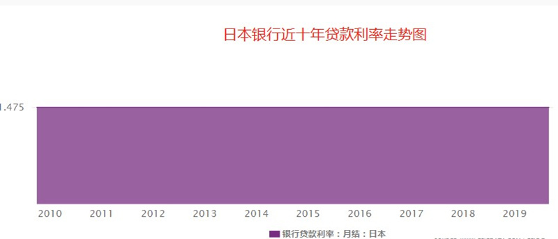 上图可以看出,向日本银行贷款日元的年利率仅仅为1.475%,而同期SHIBOR年利率为1.6760%,中国LPR一年期贷款利率3.85%,远高于日元贷款。SHIBOR利率是银行间贷款利率,可以认为是资金的“批发市场”,而日本央行向企业和个人贷款的利率几乎与银行间市场利率持平,可见其融资成本之底。