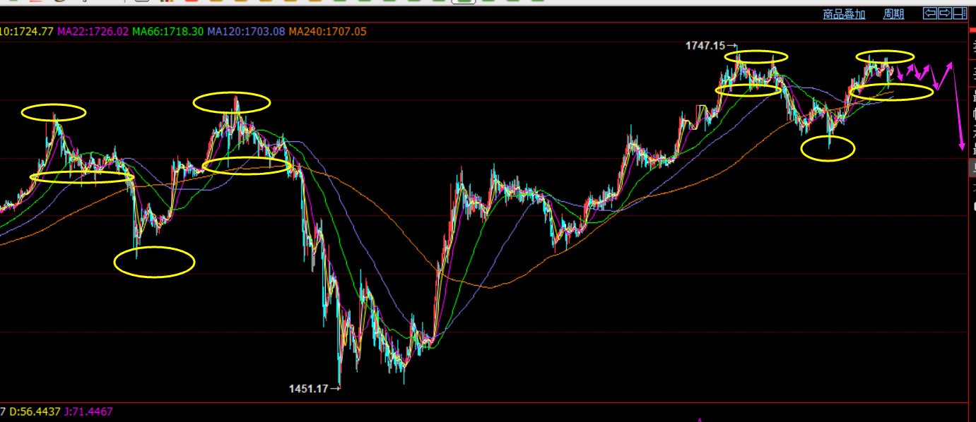 总结:讲了长期、中期以及短期思路方向,关键位置判断,很多人关心的则是操作策略方面,下周一短线先回测1717逢低可以跟多,防守1710,目标1735-1738、1740-42; 先跳空急拉至1740-42下压制先高空,防守1749,目标1730-1725; 中期波段的策略则需要关注1738此位置来布局,只要全部看完上方的技术分析解读也应该明白笔者所准备计划的;