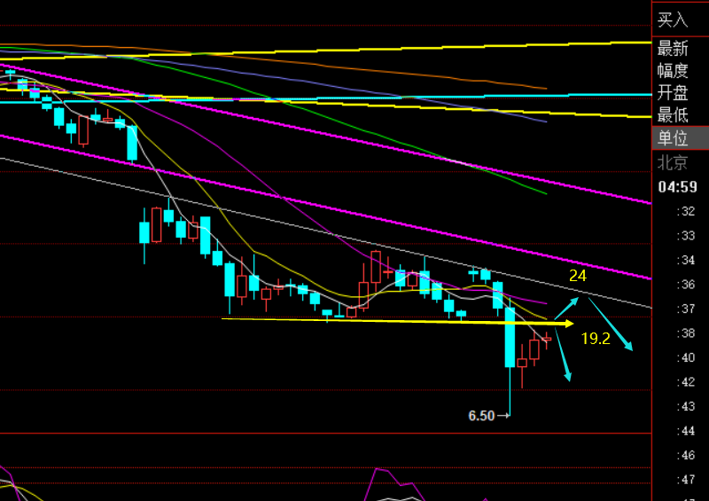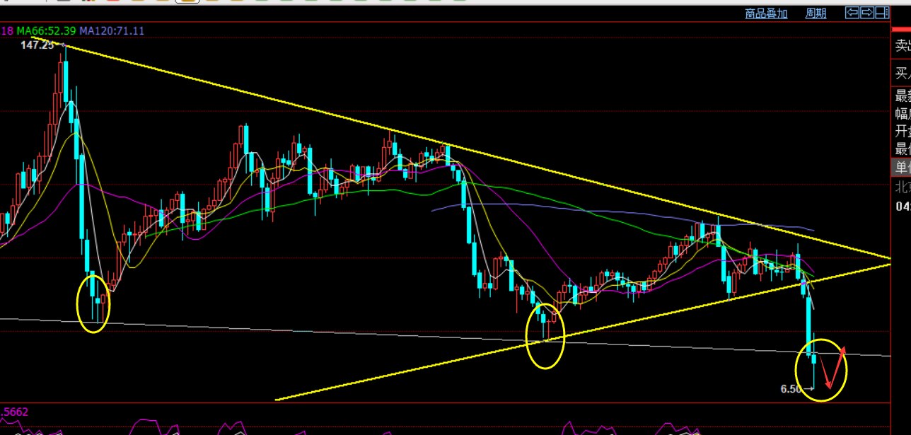 原油月线图分析:月下的技术解读已经重复讲了好几周了,长线只要压制趋势阻力线,一直维持大级别空头不变,一直关注笔者大方向空头的,自然也不会轻易去抄底做多,也不会被05合约破零而导致巨大亏损,也不会成为中行原油宝的受害者;4月份预计油价应该会形成下影线的K线,一旦落实,5月份记住,二次下滑试探6.5美元底部守住出现双底迹象,才是有效去抄底的时刻,但5月份应该应该还只是探底拉升,并不会大涨,不过应该是把握了不错的波段买点,等6月份才可能猛攻,我们知道,油价想要结束低价格的低迷期,一定只能等疫情稳定,需求量扩大,才能改变,而疫情的大致稳定时间应该都起码6月份后;