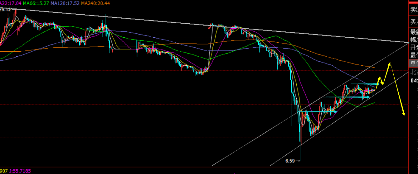 操作上:下周一先下滑触及16.6短多,防守16,目标18,突破站上则继续补多,看19-19.2;先上冲19.2及上方压制则先短空试探,目标18及下方; 若出现利多刺激,意外急拉,则关注22美元,极限24美元,逐步分批波段做空,防守24.5上,目标13.5、10.5;