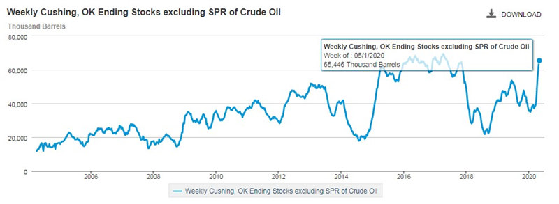 根据5月1日当周的数据看,库欣地区原油库存总量为6544万桶,按照美国官方说法库存上限7600万桶计算,还剩余13.8%的储油空间。沙特减产而油价没有出现大涨,一方面是需求端不足;另一方面就是四月份“原油库存危机”让市场印象深刻,投资者担心再次出现“负油价”的局面,故而对利多消息视而不见。