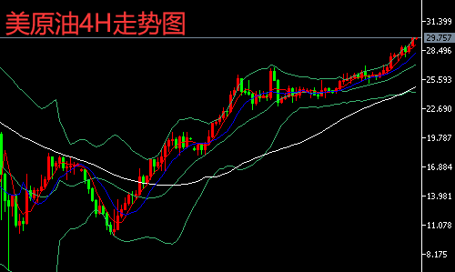 原油4小时来看,打破区间震荡格局,原油目前在25.0上方横向整理启稳,且整理时间较长,始终未跌破多头临界点,反复去测试高点,目前维持在临界点之上低多看新高。技术面来看,KDJ金叉,随机指标走高,MACD金叉,红色能量柱扩大,均线成多头发散,原油具备冲高破高量能。综合来看,下周一短线操作思路上陈文龙个人建议以回调做多为主,反弹高空为辅,上方短期重点关注30.8-31.0一线阻力,下方短期重点关注28.6-28.8一线支撑。