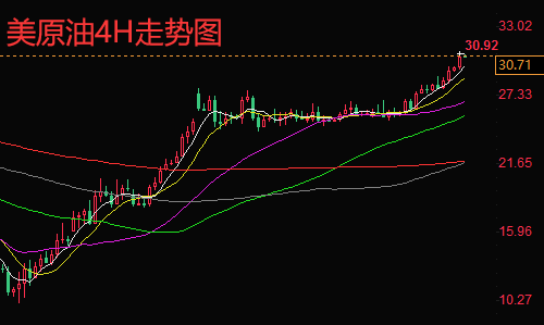 原油从4小时来看,打破区间震荡格局,原油目前在25.0上方横向整理启稳,且整理时间较长,始终未跌破多头临界点,反复去测试高点,目前维持在临界点之上低多看新高。从技术面来看,KDJ金叉,随机指标走高,MACD金叉,红色能量柱扩大,均线成多头发散,具备冲高破高量能,就看何时发力,油价目前在中性偏高的位置,短线暂时还是震荡蓄势当中。综合来看,今日短线操作思路上陈文龙个人建议以回调做多为主,反弹高空为辅,上方短期重点关注31.8-32.0一线阻力,下方短期重点关注29.3-29.5一线支撑。