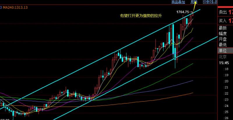 黄金上周四晚间价格突破了关键的三角整理上轨压力1718-1720,这一突破给黄金带来了多头动能,然后再次突破1738前期双顶压制,启动了强势单边上涨,这两天一度涨至1764高点,对于今日以及后市的看法如下:第一,月线级别,长线一直以来是多头格局不变,这次四五月连续的大阳上攻,力度非常之大,1755分割压力也直接突破丝毫不回头,那么下一个就是11年末以及12月年11月前盘中的多次受压高点,集中1787-1795区域,也是接下来需要面临的强压区域;第二,周线级别,目前也直接突破了上行通道的上轨压制,有概率开始连阳的上涨模式;第三,日线同样是连阳,单边启动不容小觑,并且此时连阳容易引发加速的一根大阳出现,因此上方还有不错的运行空间,看似高,其实不高,别等最后加速大涨后,再去高位跟多,那样就容易被套,此时乘势追击还是不错的选择;第四,4小时延续5均线一路破高,小时线延续中轨不断拉升,今日预计依托短期均线盘整后会再度拉升,最后一次的横盘支撑是1753-54,而起涨点1740则是趋势风水岭,这里不下破之前,单边格局不会改变,顺势继续看涨; 操作上,建议1753-54上方继续保持看涨,看1770、1780,乃至1790,目前1750一线作为防守即可;