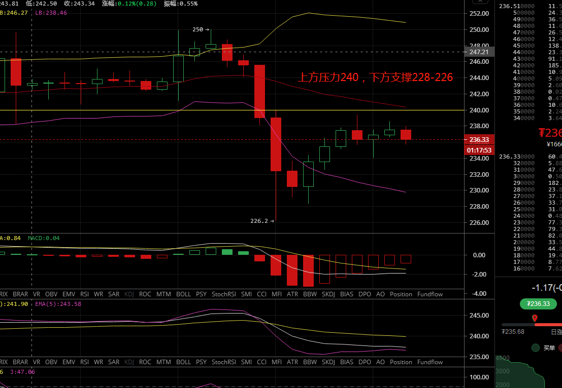 2:233附近多,止损230,目标237