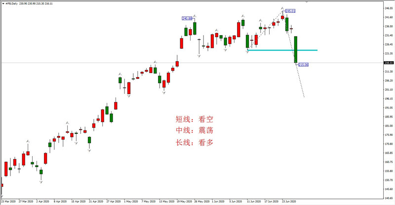 短线:看空,顶分形在6月23日形成,高点245美元/股;