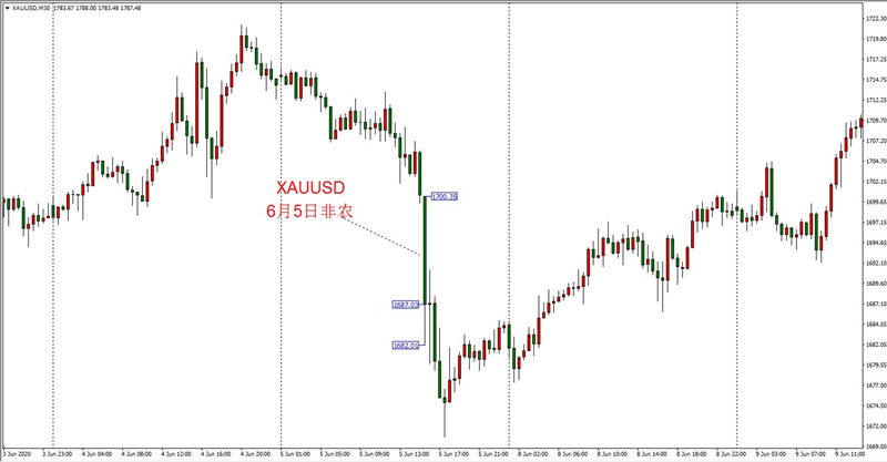 上次亮眼非农公布后,黄金自高点1700下跌至1682,跌幅180标准点。数据公布后,第二日黄金即开启反弹,当前已经创出新高。可以看出,非农数据无论如何超预期,都无法改变长周期的投资品走势。另外,当数据公布后的利多利空影响与投资品主流趋势相反时,建议采取“抄底”操作,也就是数据影响结束后再反向进单(顺大势),数据的冲击只是提供更加合适的入场时机。参与左侧数据行情的难度较大,第一是行情变动相当剧烈,基本在数据公布后的第一秒,大部分行情就已经运行结束,无法及时进单;第二是数据行情持续时间短,不能够长期持有,也就不能有效放大利润。当然,这里存在一种理念,就是只有长期持单才能够获得持续稳定盈利,短线交易注定大起大落。