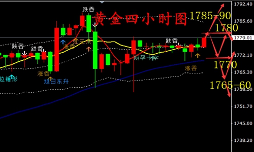 3、若是黄金向下破位1770关口支撑,有在上方进场空单的可持有下看1765-1760区域附近,破位继续持有;若是黄金回落在1765-1760关口区域支撑有效,则可介入多单