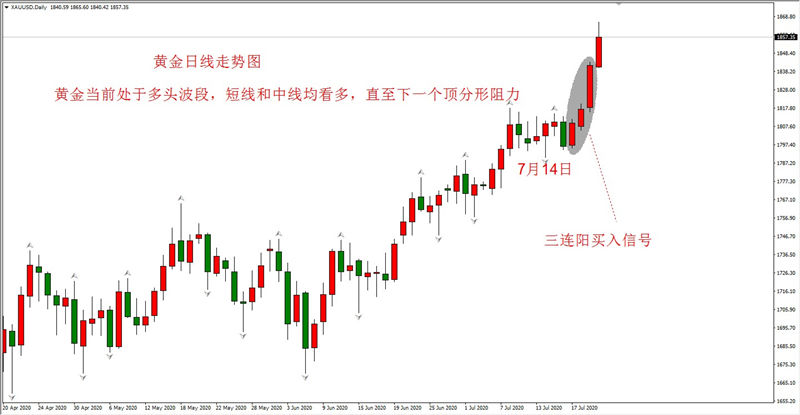 长线震荡,虽然美国疫情没有出现拐点,但美国十年期债券收益率已经横盘较长时间。只要美债收益率没有大幅下降,就代表当前市场避险情绪平稳,而推动黄金上涨的核心因素就是避险情绪。美元指数自6月30日开始,就处于下跌波段当中,昨日又收出长阴线,这是造成黄金大涨的核心推动因素。美元下跌的逻辑,在于除美债之外的其它国家债券收益率均出现不同程度上涨,而美债依旧维持在3月份的水平。